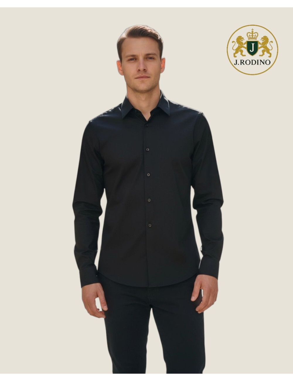 Camicia slim fit J.RODINO realizzata in pregiato tessuto 90% cotone e 10% elastam, per una vestibilità confortevole e impeccabile. Linea pulita, colletto classico e chiusura con bottoni tono su tono. Disponibile in vari colori, ideale per uno stile raffinato e contemporaneo, dal look business all’eleganza casual.