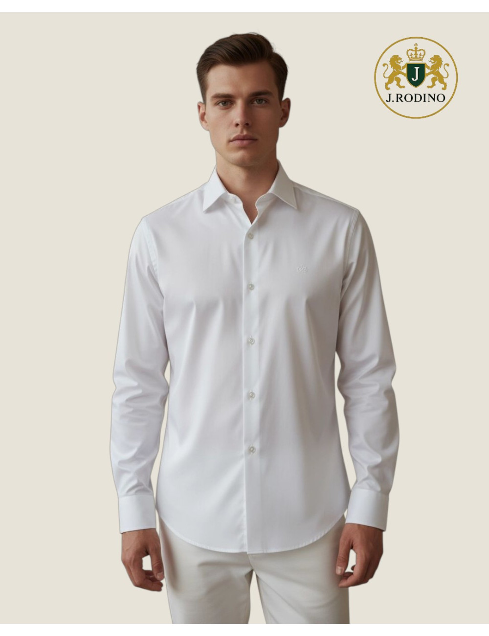 La camicia slim J.RODINO rappresenta l’equilibrio perfetto tra eleganza sartoriale e comfort quotidiano.