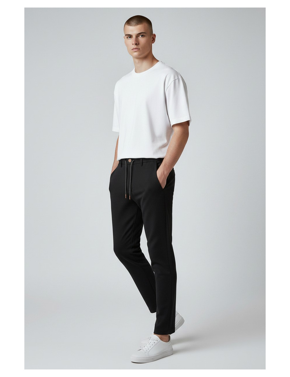 • Taglio Moderno: Lunghezza cropped (alla caviglia) con fondo rifinito, ideale da abbinare sia a sneaker che a mocassini.