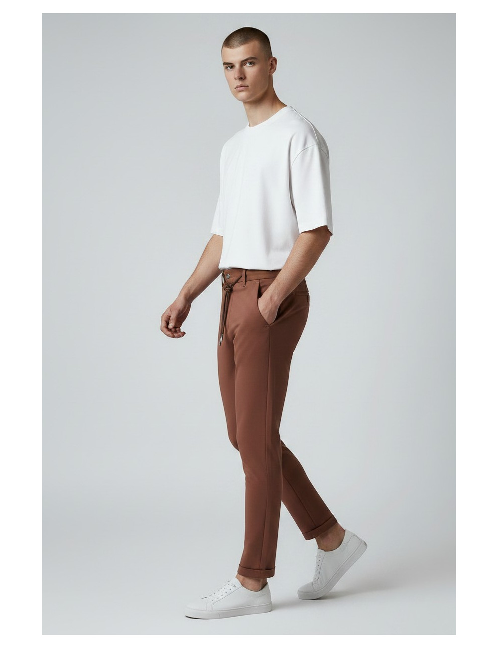 • Taglio Moderno: Lunghezza cropped (alla caviglia) con fondo rifinito, ideale da abbinare sia a sneaker che a mocassini.