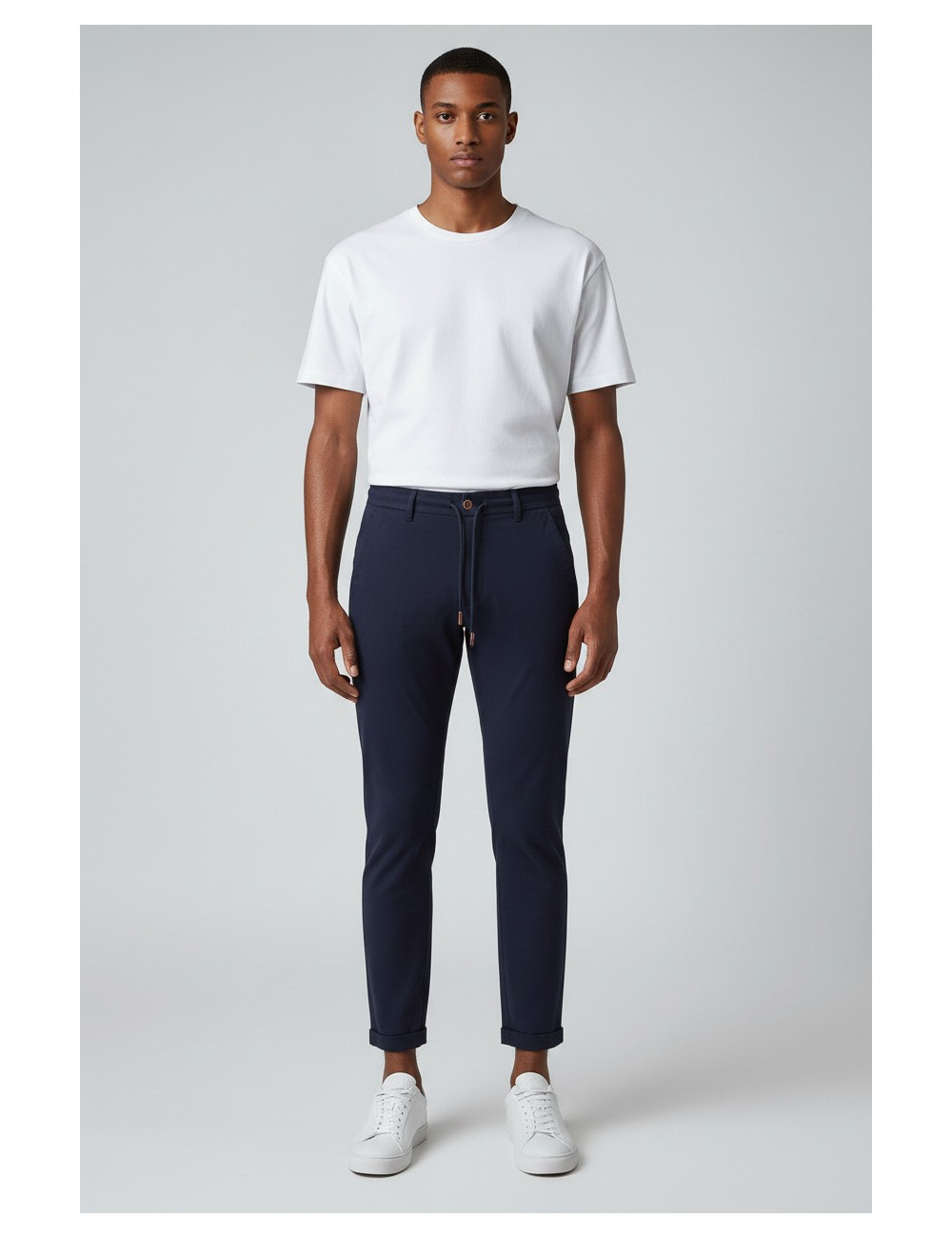 Taglio Moderno: Lunghezza cropped (alla caviglia) con fondo rifinito, ideale da abbinare sia a sneaker che a mocassini.