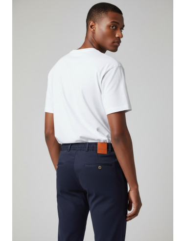 Dettagli di Pregio: Patch posteriore in similpelle color cuoio e tasche a filo posteriori con bottone logato.